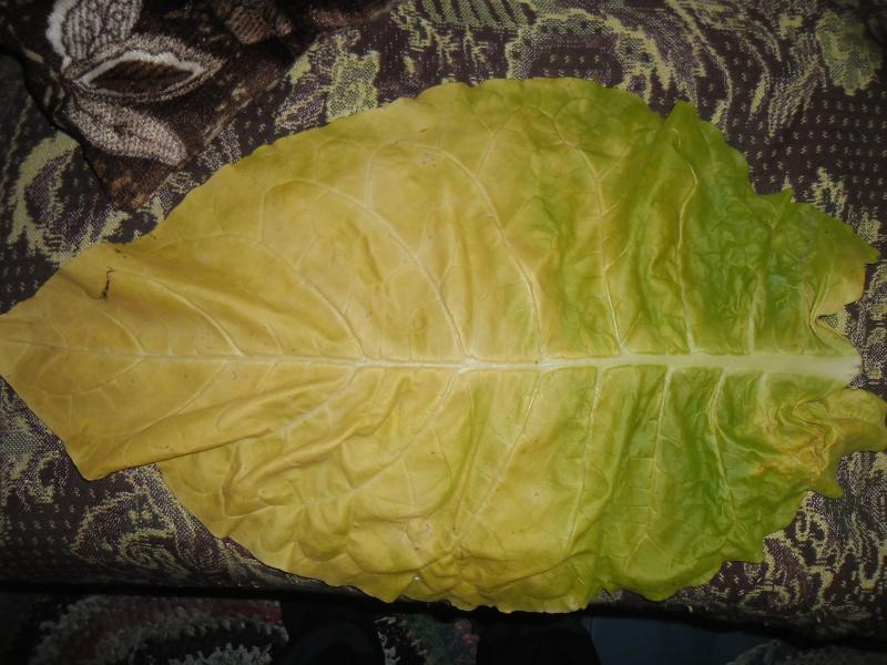 С середины июля можно начинать сбор урожая. Когда табак Галицкий Оригинальный поспевает это очень хорошо видно. Он созревает строго по ярусам. Сначала поспевает нижняя часть растения, листья желтеют и скручиваются по краям. Их пора срывать и отправлять на сушку. Потом поспевает средний ярус, затем верхний.